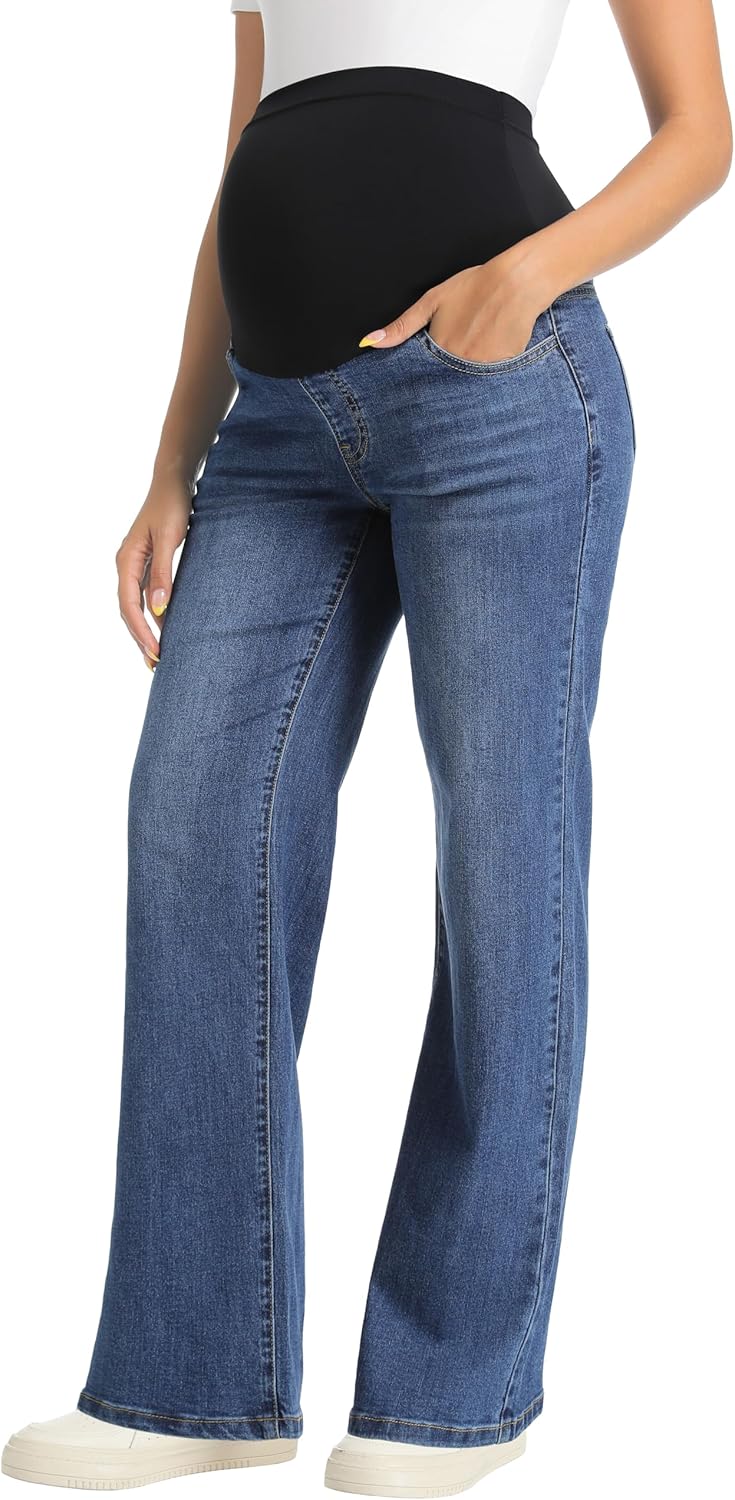 V VOCNI Women’s Maternity Jeans Straight Leg Stretchy Pregnancy Jeans Wide Leg Denim Work Pants