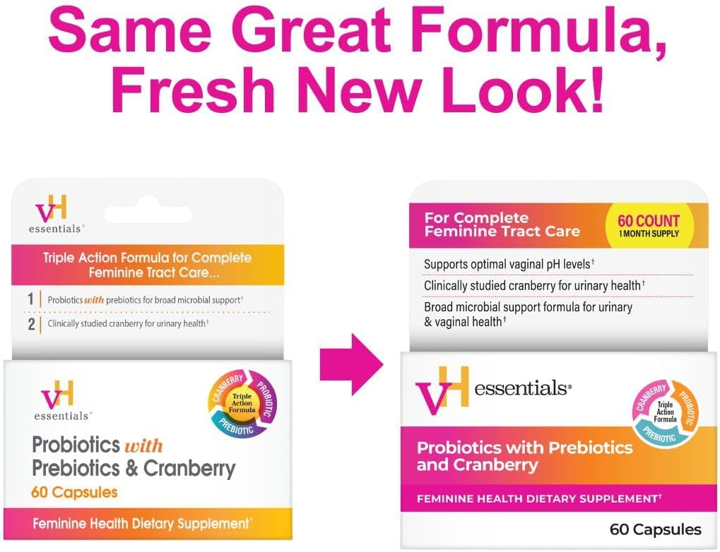 vH essentials Probiotics with Prebiotics and Cranberry Feminine Health Supplement – 60 Capsules