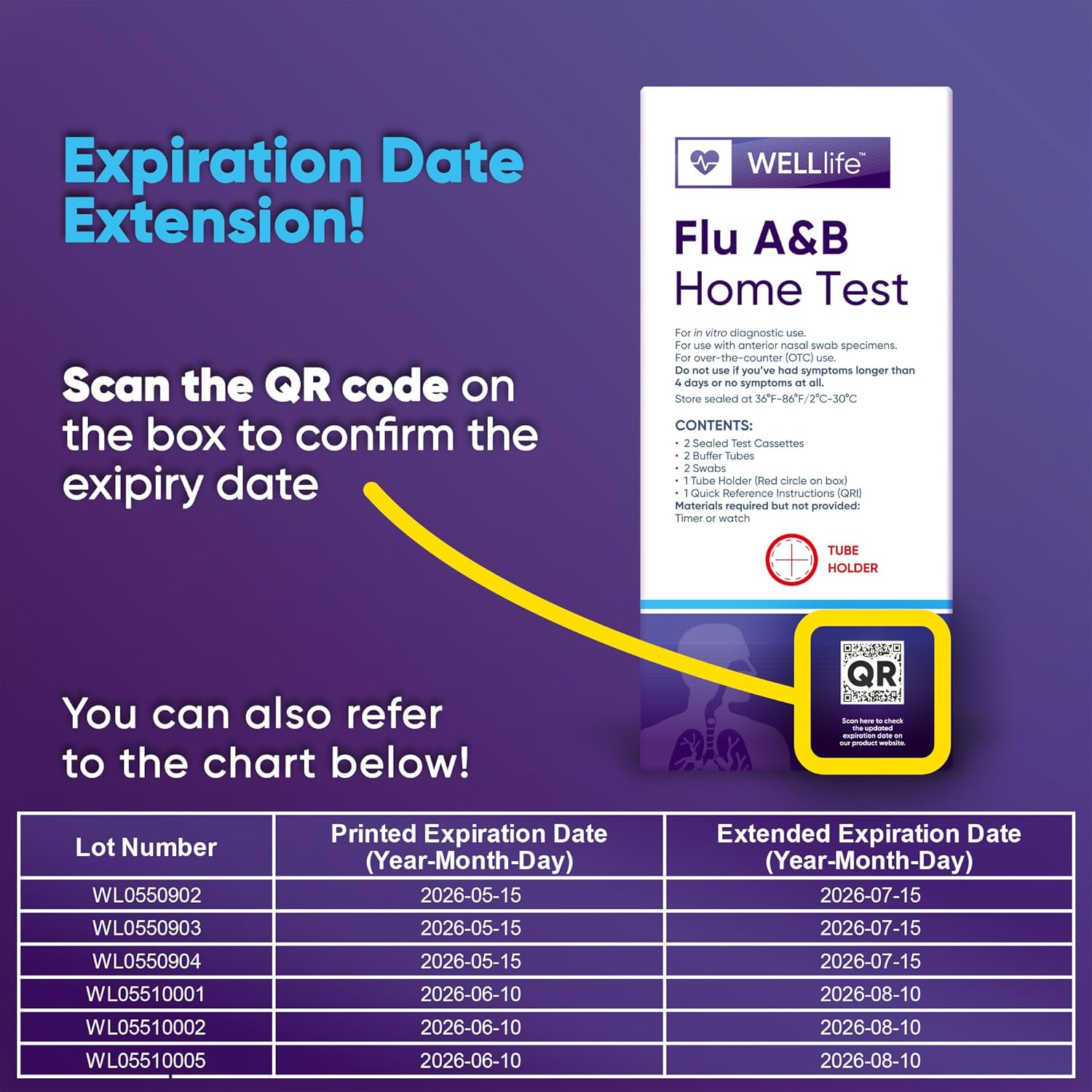 WELLlife Flu A&B Home Test, Flu Test 1 Test FDA Authorized Influenza Rapid Test Kit for Home Use Result in 10 Minutes