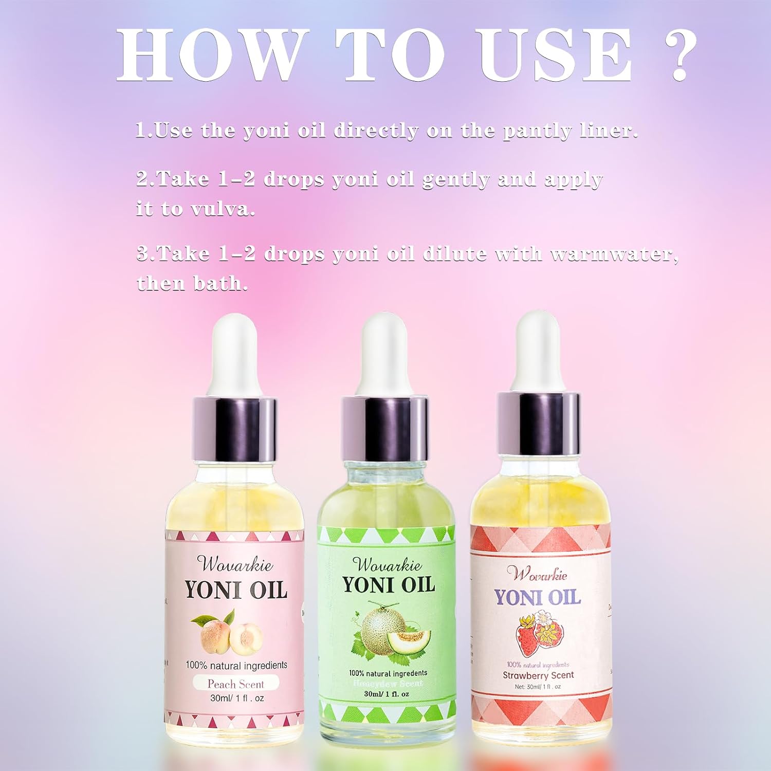 Yoni Oil for Women Set Of 3, 100% Natural Feminine Oil Deodorant for Women, Eliminates Odor and Ph Balanced, Feminine Serum Made with Pure Natural Essential Oils (1 fl oz/30 ml)