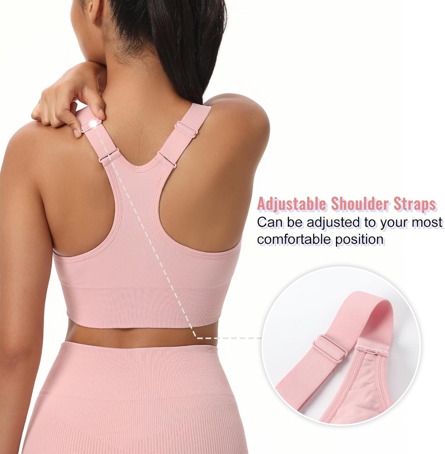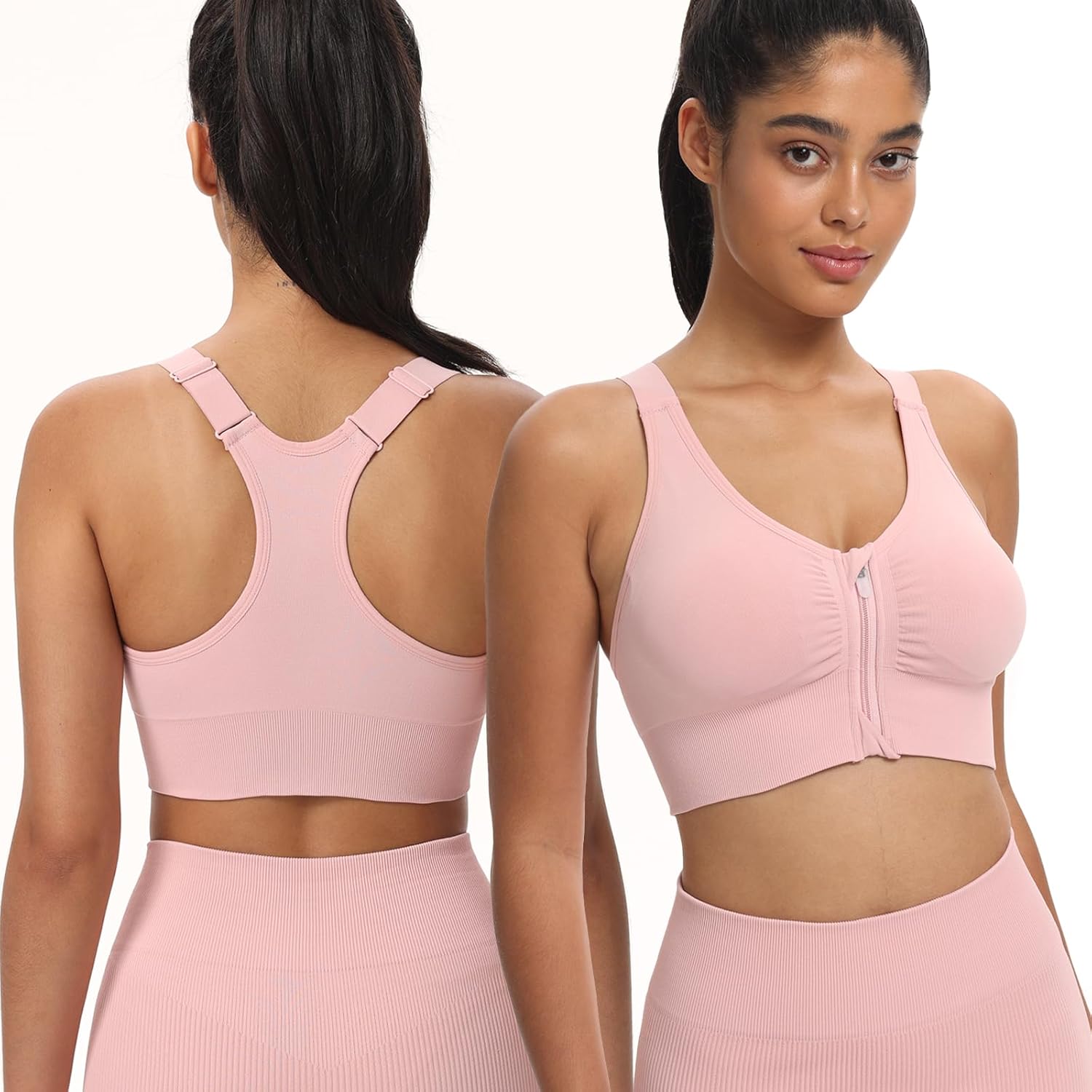 Zip Front Sports Bras for Women Adjustable Racerback Medium Support Bras Padded Post-Surgery Bras Seamless Yoga Athletic Bra